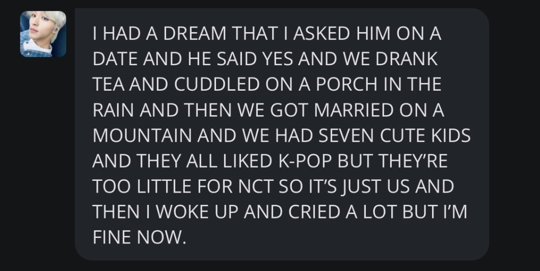 AUTOR•Ej bo ja wam nie opowiadalem ale w te noc teraz nie moglem zasnac tak jakos do 02:00-03:00 wiec postanowilem ze wlacze sobie how to basic na yt (i hope wiecie o kogo chodzi jesli go nie znacie y'all dont know what childhood is) i co ciekawe jego filmiki mnie nie obrzydzily tylko zglodnialem wiec poszedlem do kuchni zrobilem sobie jajko sadzone i po jakis dwoch filmikach uznalem ze nie no musze isc spac ale dalej nie bylem jakos w stanie wiec wlaczylem sobie norenmin moments i az sie poplakalem ISTG GODZINA 01:27 A JA OGLADAM NORENMINY NA YT I RYCZE CAUSE THEY ARE SO FCKIN ADORABLE i tak mi oczy napuchly ze w koncu poszedlem spac that was so terrifying no a pozniej wstaje o 13:30 ikr my oversharings weird po prostu czulem potrzebe podzielenia sie z wami ta historia mojego zycia i hope you enjoyed heh