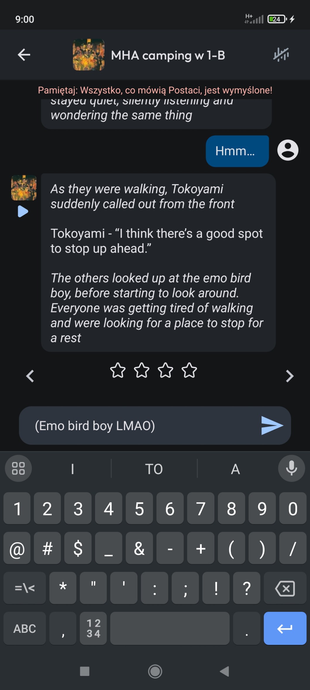 AUTOR•I macie coś z mojego wczorajszego chatu c.ai (o emo bird chodzi)