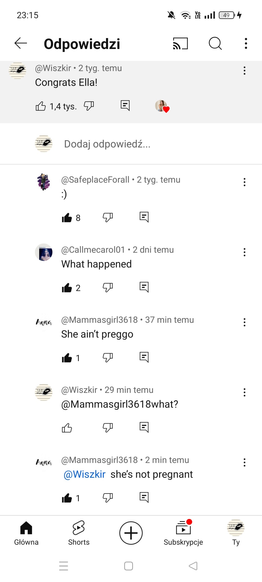 AUTOR•Pod jednym filmikiem Ella Rene powiedziała że ma chłopaka i napisałam w komentarzach "gratulacje!" i ktoś mi pisze "ona nie jest w ciąży"