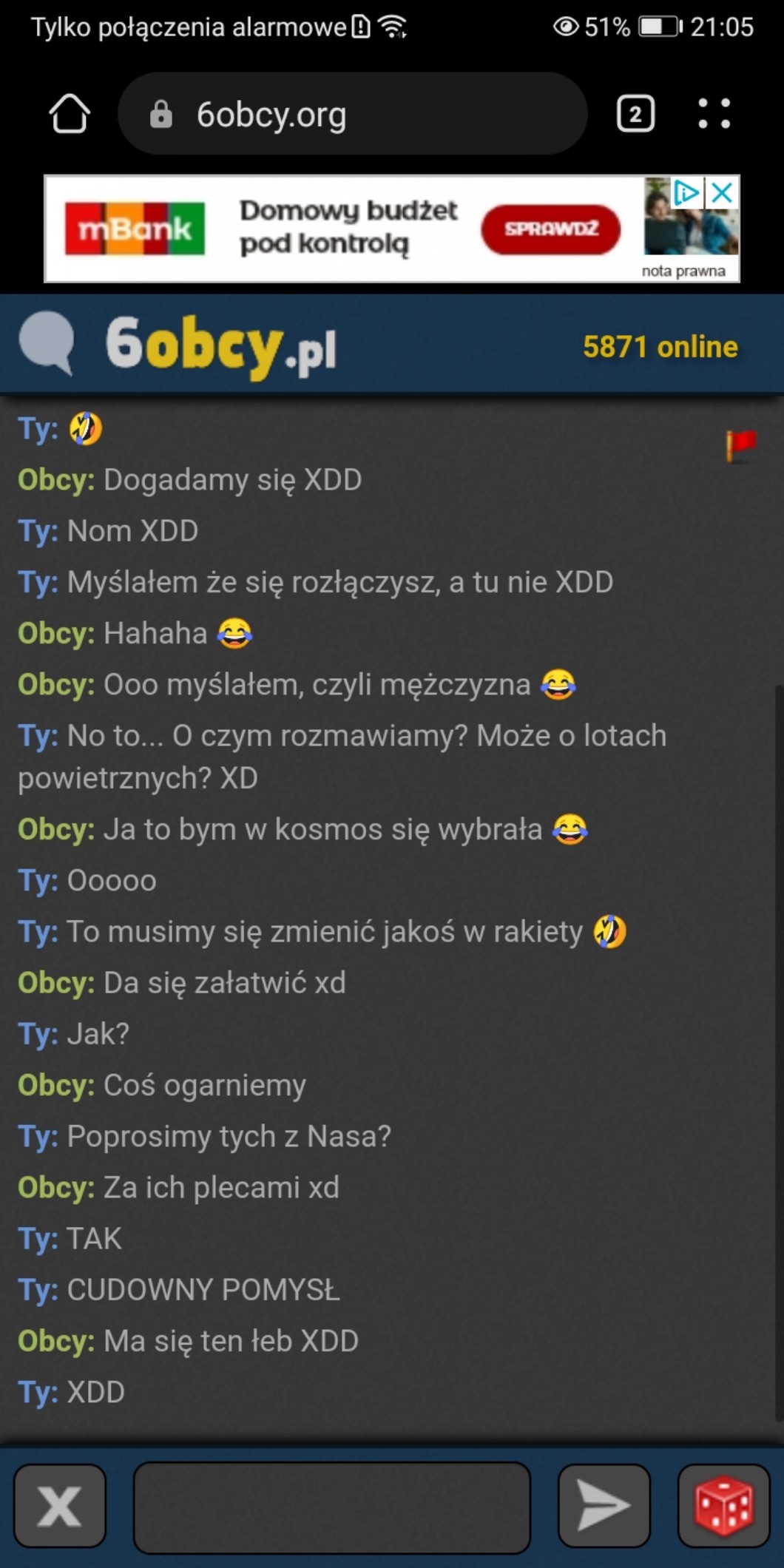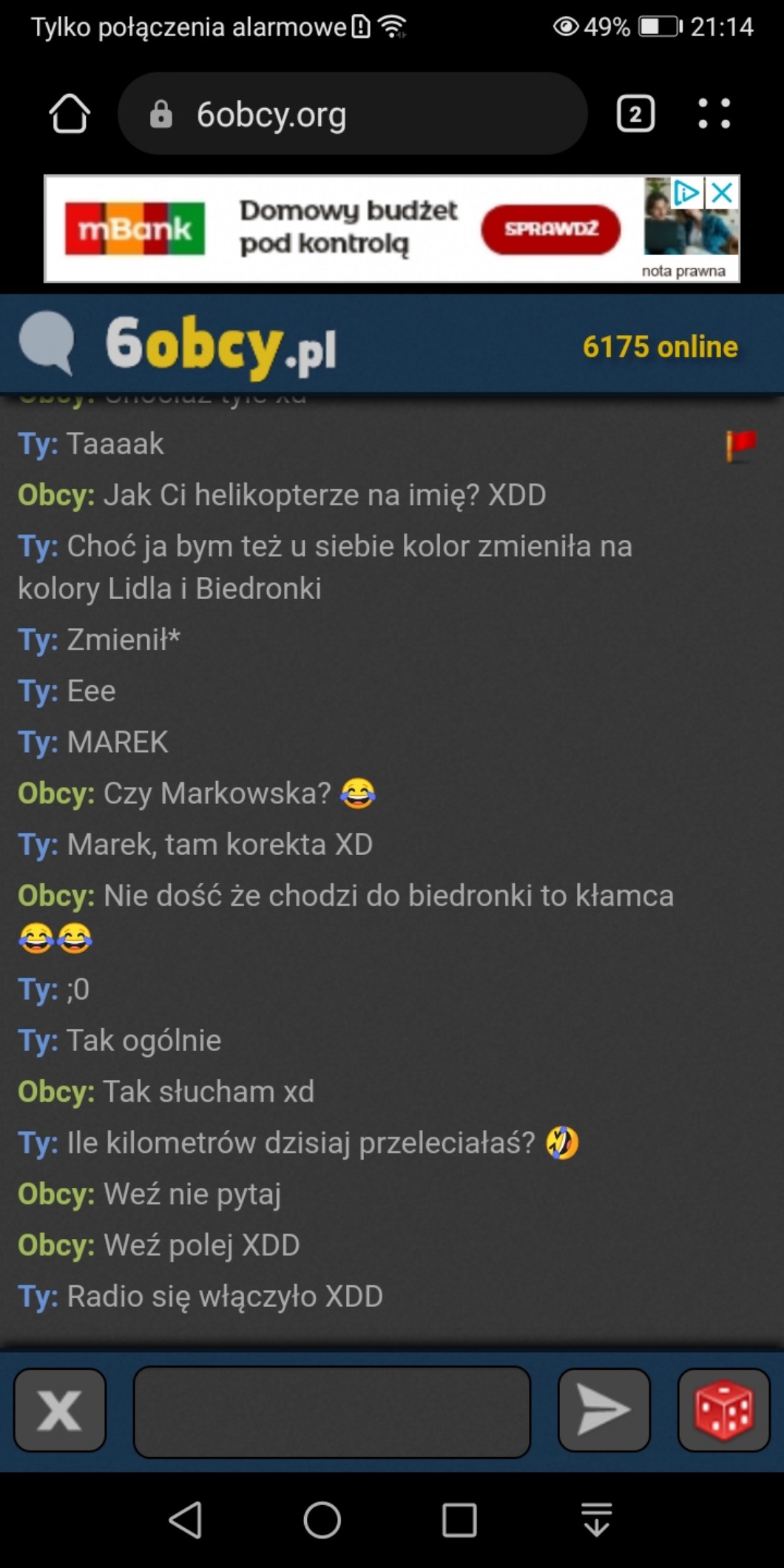 @Flowy. xD ja znalazłam jedynie ludzi którzy piszą "M" i się rozłączają :')