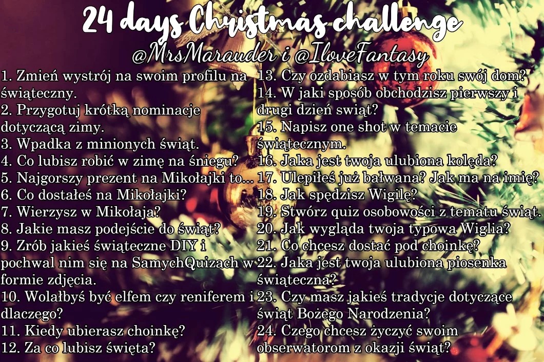 Okej. 24 Days X-Mas Challenge. Te dni obchodzę z rodziną. Może w następnym wpisie opowiem coś dokładniej.