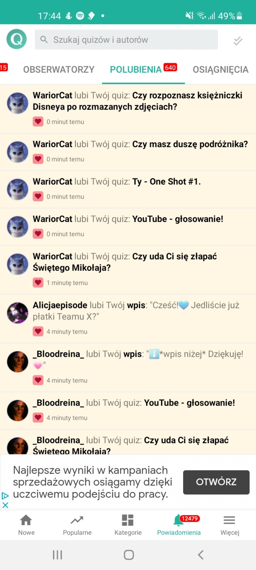 AUTOR•Proszę, niech ktoś polubień mój jaki kolwiek quiz. Brakuje mi 1 polubienia do 350.