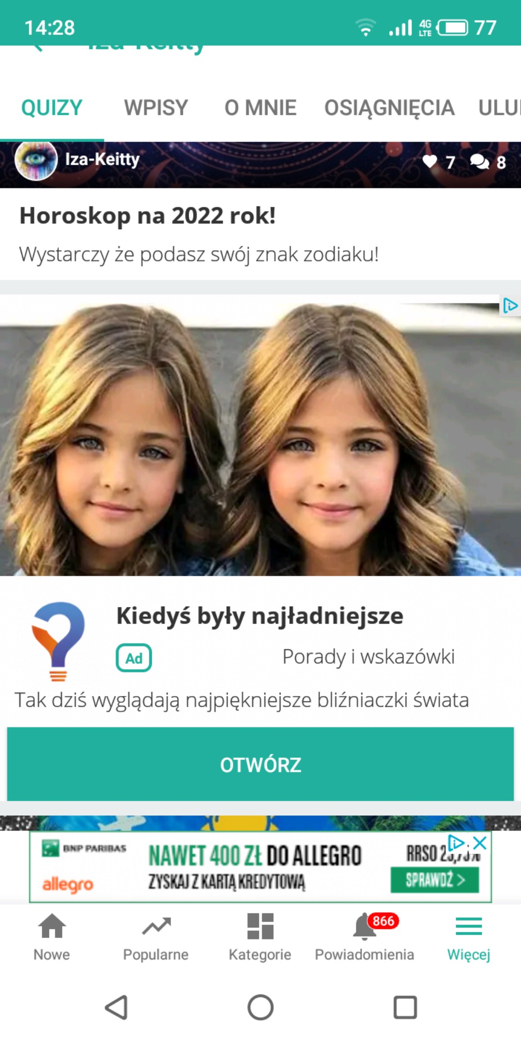 ❤1. Polubienie 20 quizów, miły kom, obs