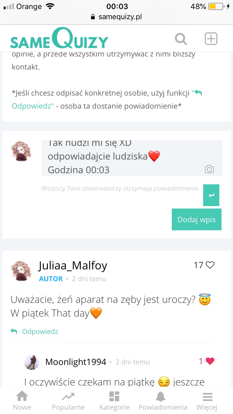 Tak nudzi mi się XD odpowiadajcie ludziska❤️ Godzina 00:03