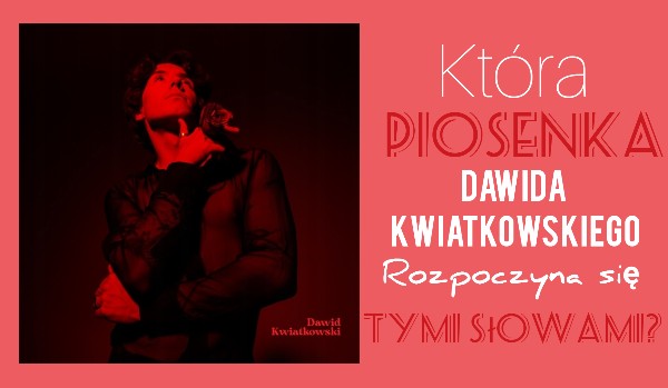 Papuzka_123 Która piosenka Dawida Kwiatkowskiego rozpoczyna się tymi słowami? Sprawdź jak dobrze znasz piosenki Dawida Kwiatkowskiego! Papuzka_123 • 3 lata temu • #dawid #kwiatkowski #kwiatonators #piosenki #sprawdz 26 10 Rozpocznij quiz