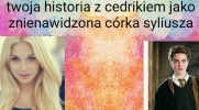 Natalia.NB Twoja historia z cedrikiem jako znienawidzona córka syliusza Wejdź i zobacz 8 Natalia.NB • 8 lat temu • #emocie #harrypotter #milosc #pszygoda 26 8 Rozpocznij serię Twoja historia z cedrikiem jako znienawidzona c... 3 Twoja historia z Cedrikiem jako znienawidzona c... 2 26 8