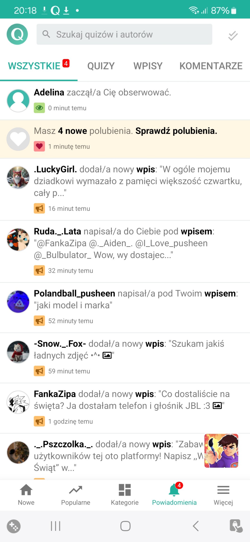 Przy pomocy wpisów możesz zadać autorowi pytanie, pochwalić go, poprosić o pomoc, a