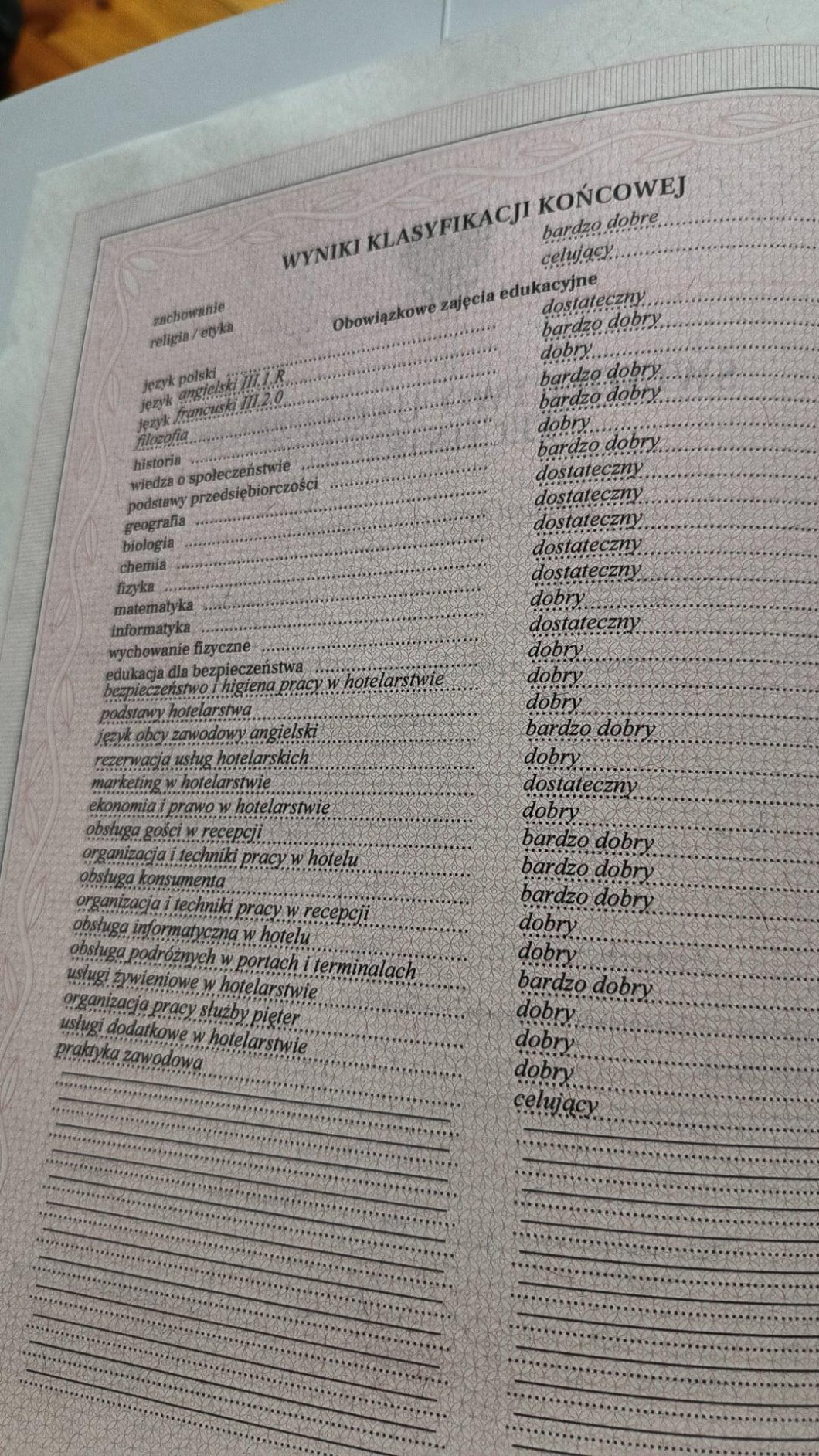 Za to z anglika dostateczny XD