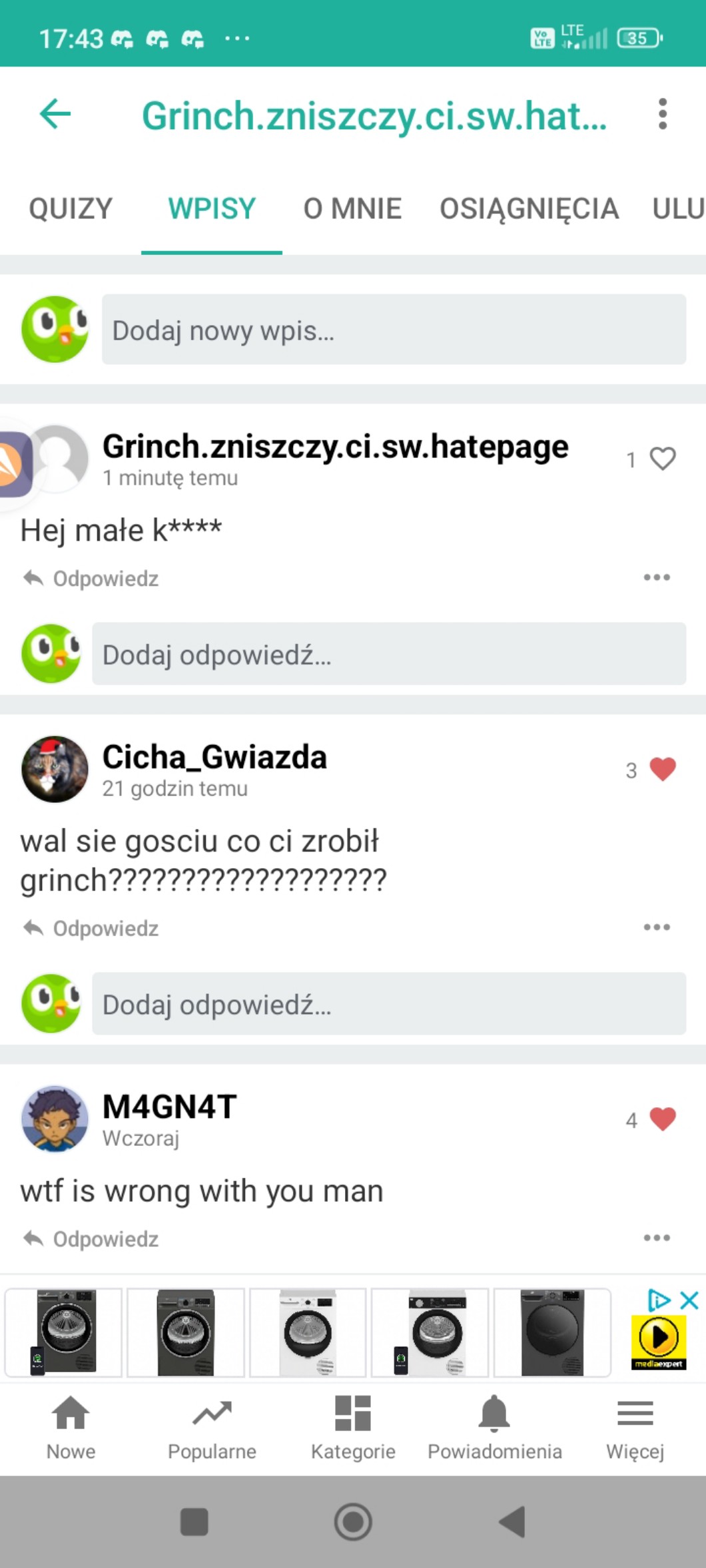 @Grinch.zniszczy.ci.sw Po co ktoś wogule zaklada hatepage😠? Nie rozumiem, ale nie miło😟