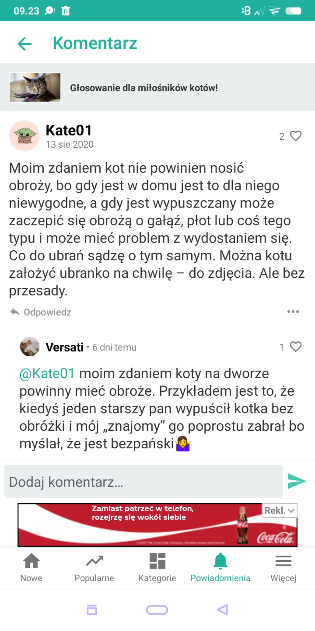AUTOR•Ludzie przestańcie mi pisać, że niby dobrze, że kot nosi obroże. Moje zdanie jest takie, że nie powinny, bo sobie coś zrobią i tyle. To jest moje zdanie, które mam prawo wyrazić.