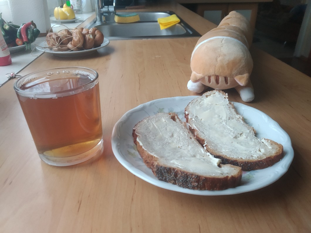 Mam jedzonko kanapeczki z masełkiem i herbatkę :}