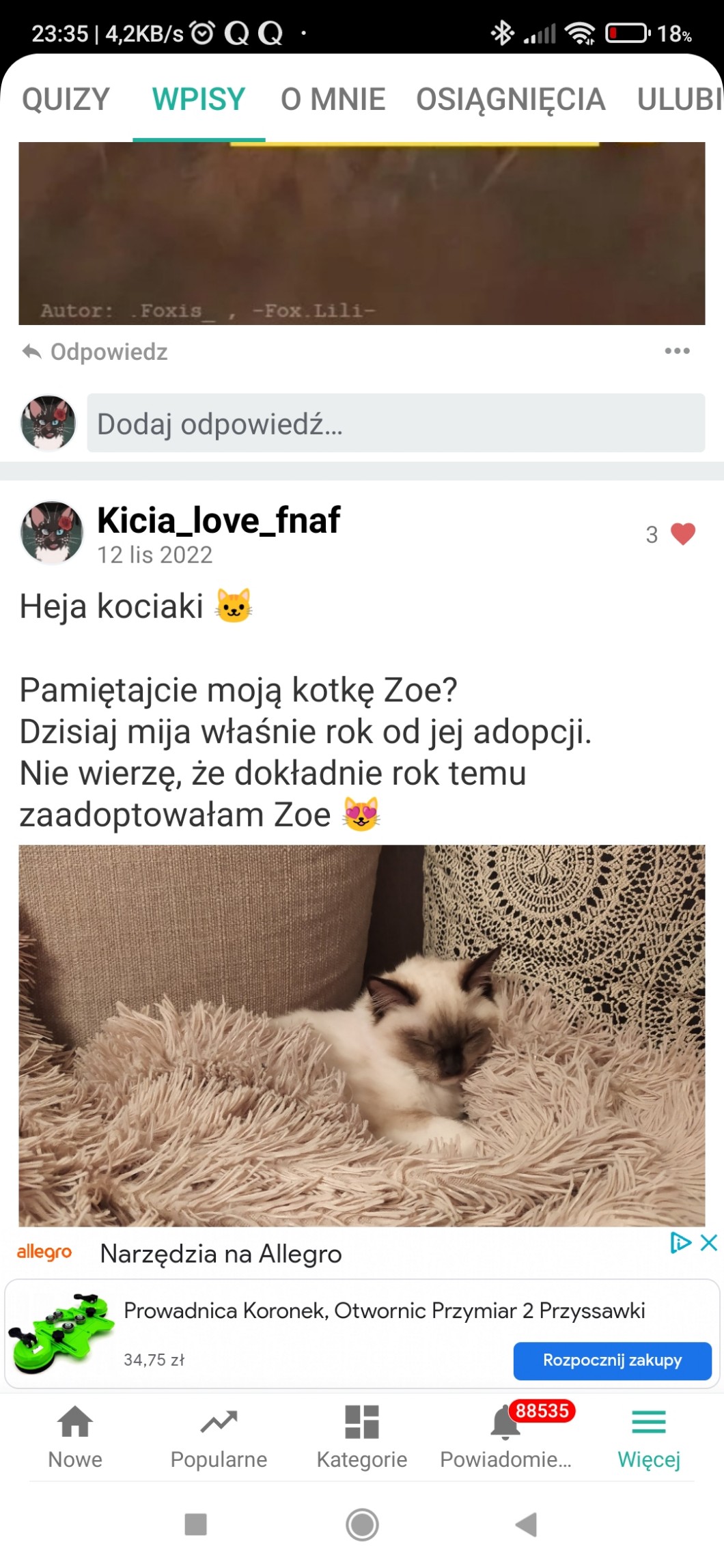 AUTOR•Nie pytam czm to jest z 12 jak to wstawiałam 11 ale oke i tak wogule to Hejo kociaki 🐱