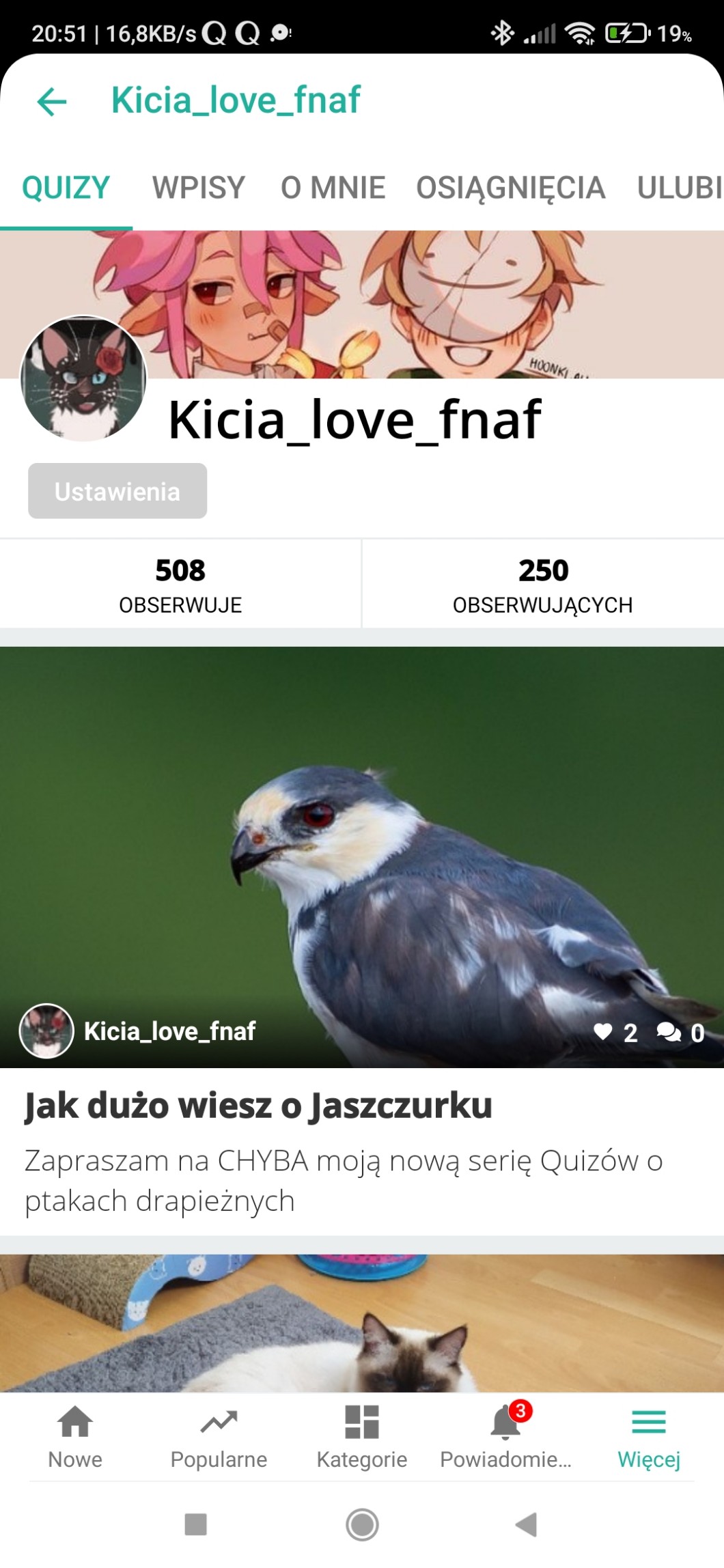 Ten kto nie ma ode mnie obsa to może go dostać komentując mój ostatni Quiz jak coś to ma ptaka na miniaturce 😉🐦