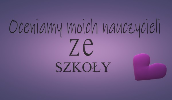 Witajcie, dawno nic nie pisałam, ale jestem!!! Dzisiaj sobie ocenimy moich nauczycieli, co czemu nie? Będziecie oceniać czy fajnie czy raczej źle ich oceniłam. ZAPRASZAM!!!