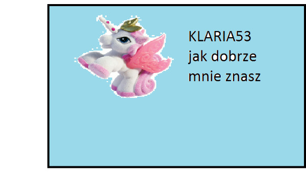 ciekawe jak dobrze mnie znasz pamiętaj że wszystkie informacje gdzieś podawałam tylko musisz dobrz patrzeć w moje quizy i główną stronę moją