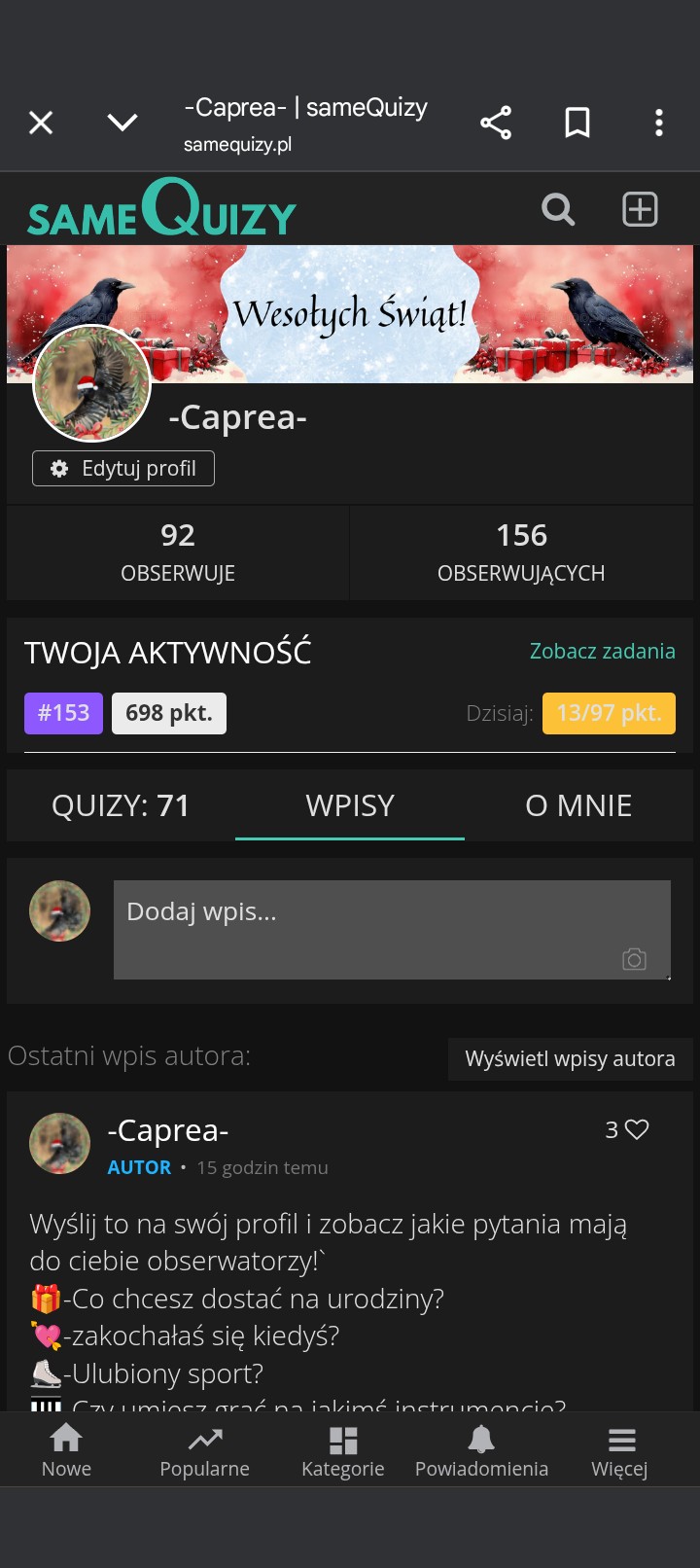 Kiedyś napiszę coś więcej o sobie, jednak aktualnie mi się nie chce. Ale ogólnie to mam IQ na minusie, jestem irytującą zodiakarą, mój typ mbti to INFP-T, nie wiem co chcę robić w życiu,... Czytaj dalej