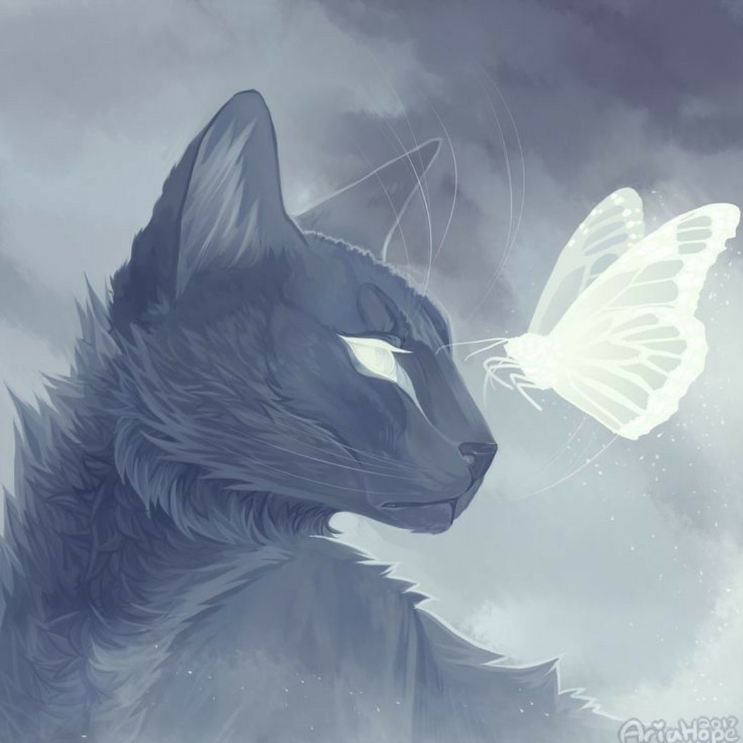 AUTOR•Ma ktoś może art z szarym kotem, byc może była to błękitna gwiazda, z białym motylem na nosie? Potrzebuję tego Arta do miniaturki, bo w końcu szykuje się jakieś one shot <3