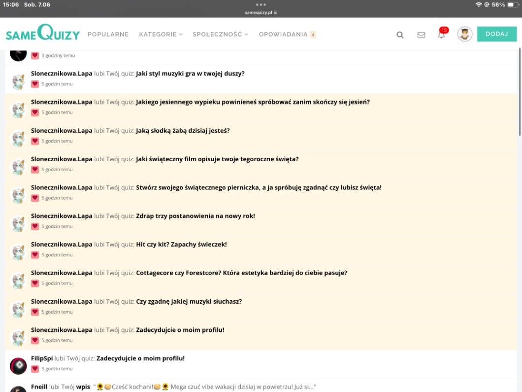 Ja nie za bardzo ale jadę na zajęcia dodatkowe. Może dodam quiz, zobaczę jak tam moja wena