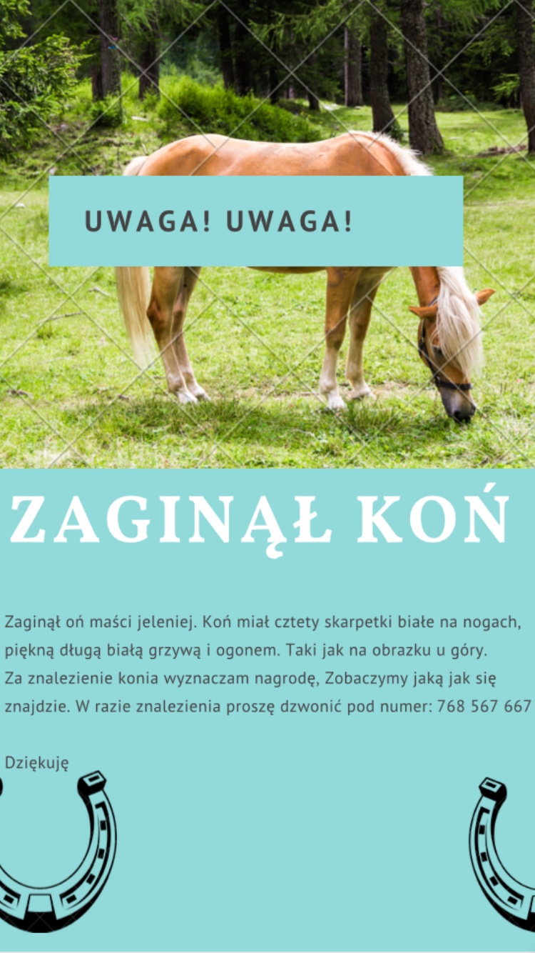 Zaginął mi koń wystawiam ogłoszenie, może go widzieliście!! Ona była taka piękna. Znalazłam tylko rozwalone drzwi od boksu😭