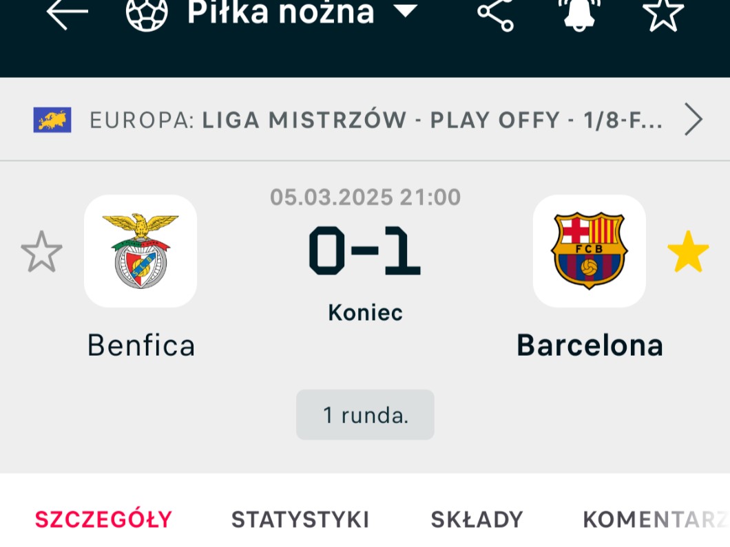 AUTOR•Z innych piłkarskich informacji to Barcelona wygrała 1;0 z Benficą.