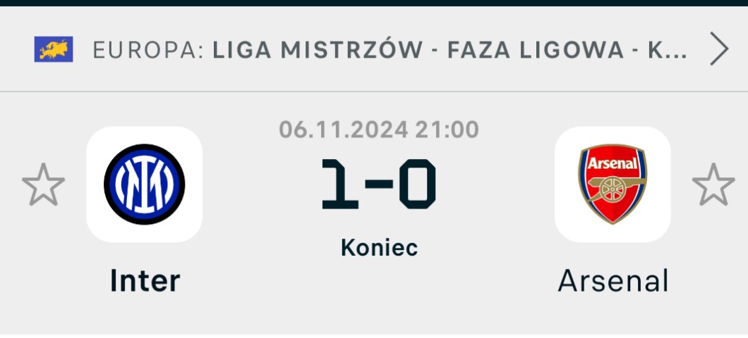 ⚽ Wczoraj oglądałam mecz Ligi Mistrzów Inter Mediolan ( w pierwszym składzie grał Polak Piotr Zieliński) z Arsenalem. Inter wygral