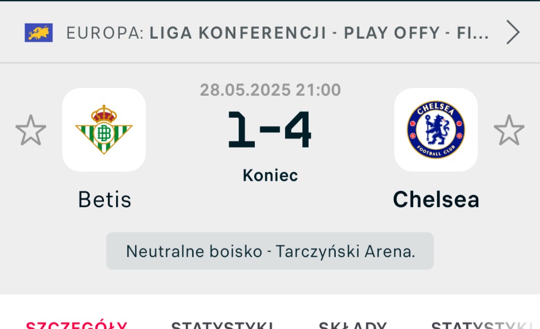 AUTOR•Chelsea wygrało finał Ligi Konferencji. W pierwszej połowie prowadził Real Betis