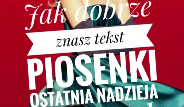 Kornixl0 Jak dobrze znasz tekst piosenki Ostatnia Nadzieja od sanah Sprawdź jak dobrze znasz tekst piosenki Ostatnia Nadzieja od sanah Kornixl0 • 3 lata temu • 1 0 Rozpocznij quiz