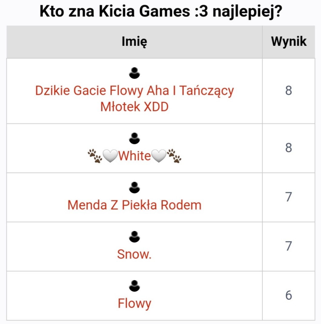 • AUTOR@Kicia_Games_3 Jak narazie wyniki mają się tak: *tamta jedna nazwa XDDDD*