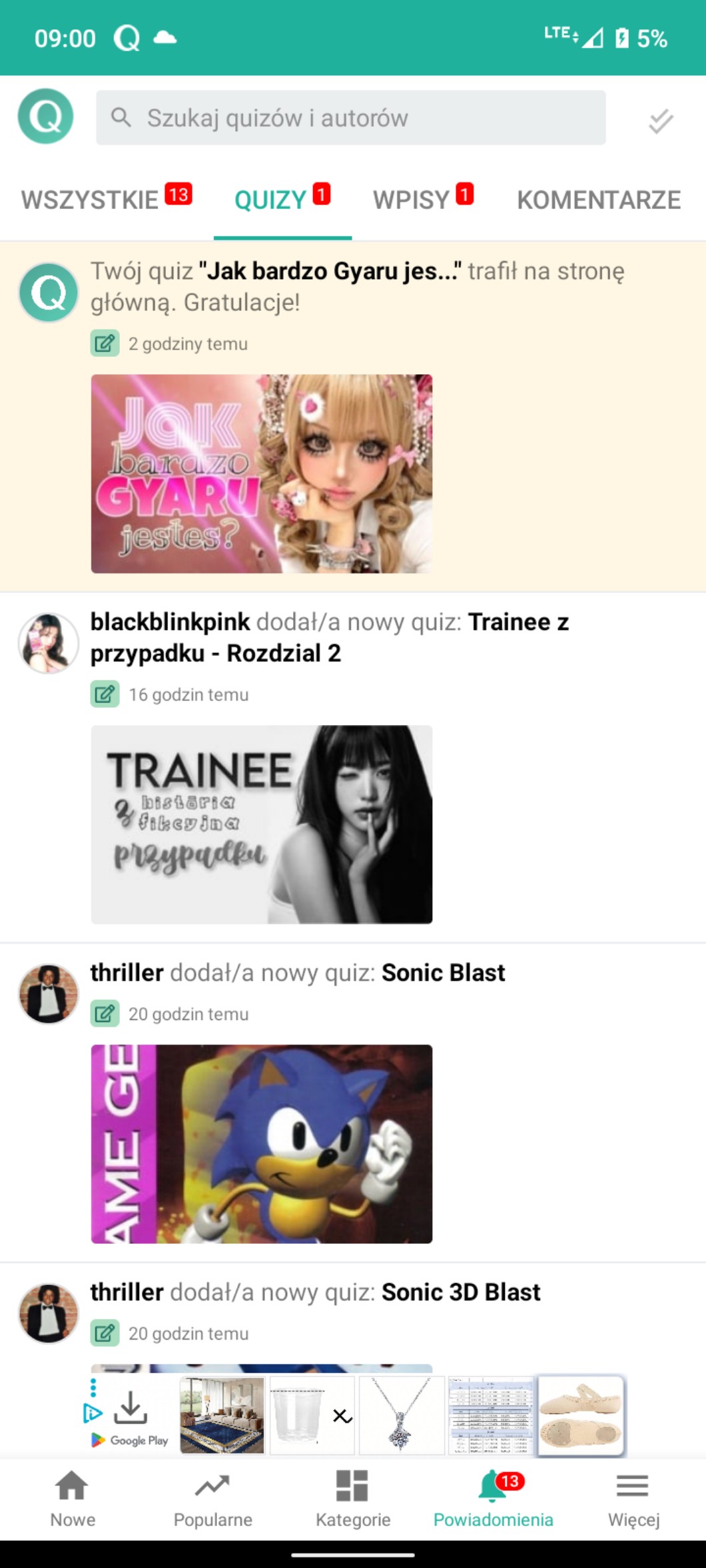 Jupiiii mamy to! 10 quizów na Stronie głównej!!! A za to dostałam też quizmistrza!!!❤️🥳