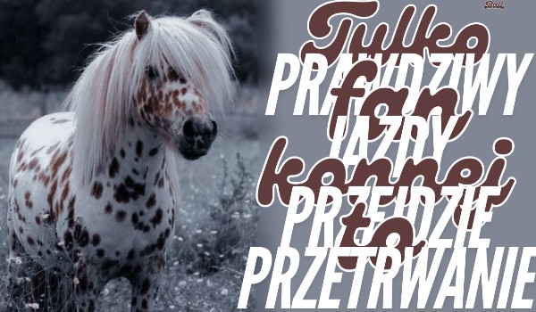 Uważasz się za prawdziwego fana jazdy konnej? To powinieneś przejść to przetrwanie z palcem w nosie. Spróbujesz? A może się boisz, że okaże się, że nie jesteś prawdziwym fanem jazdy konnej?