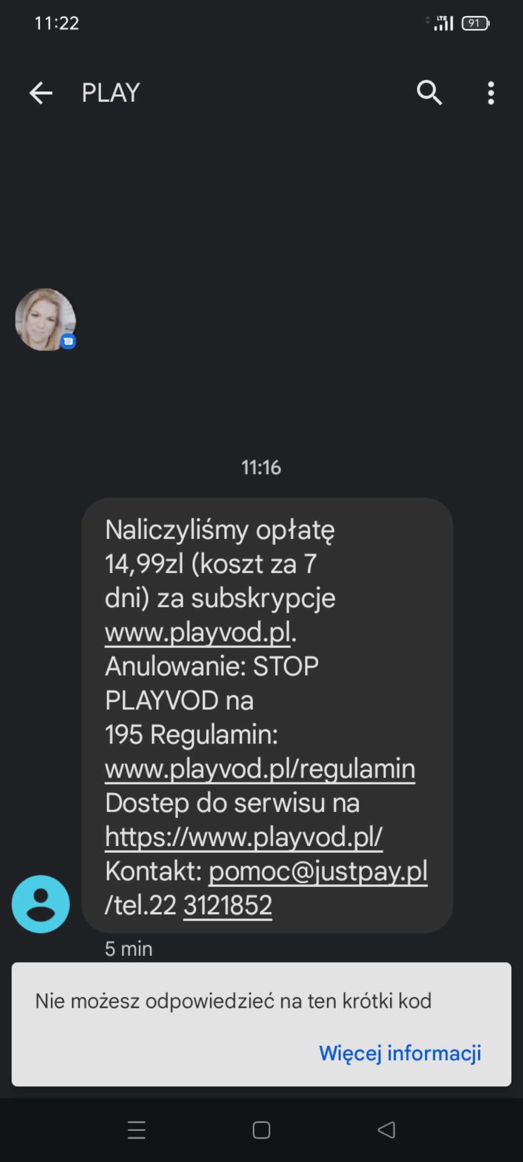 @.Dream._.Girl. musisz wysłać SMS o treści STOP PLAYVOD na numer 195