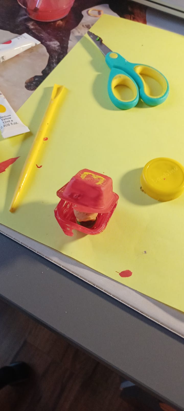 AUTOR•Kiedy pudełko wyschnie weźcie żółtą farbę i namalujcie znaczek Mc'donald