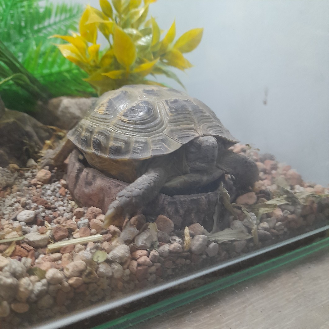 Jak ktoś ma żółwia to nie polecam dużych kamyczków bo mój Edzio zatkał sobie dzisaj łapkę.