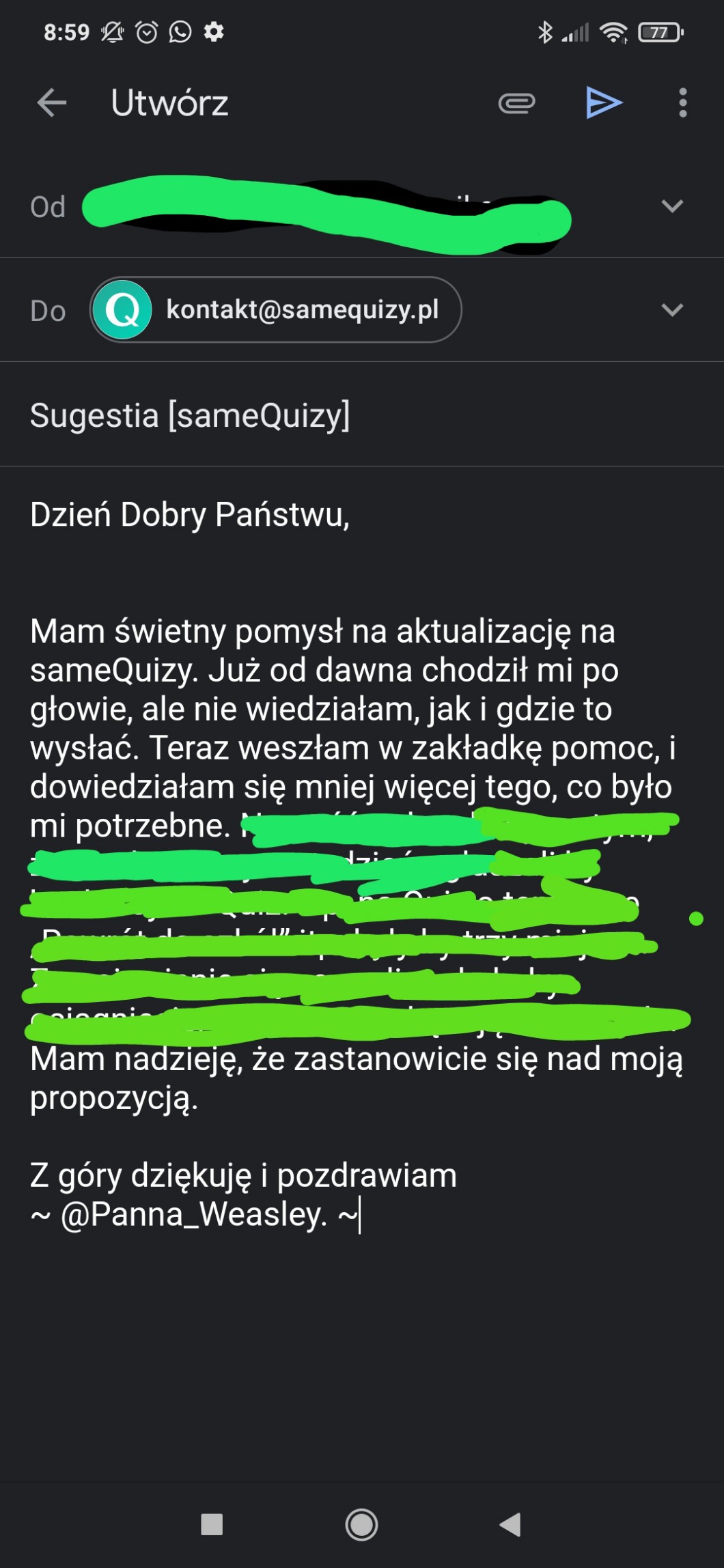 (Niektóre rzeczy musiałam wymazać)