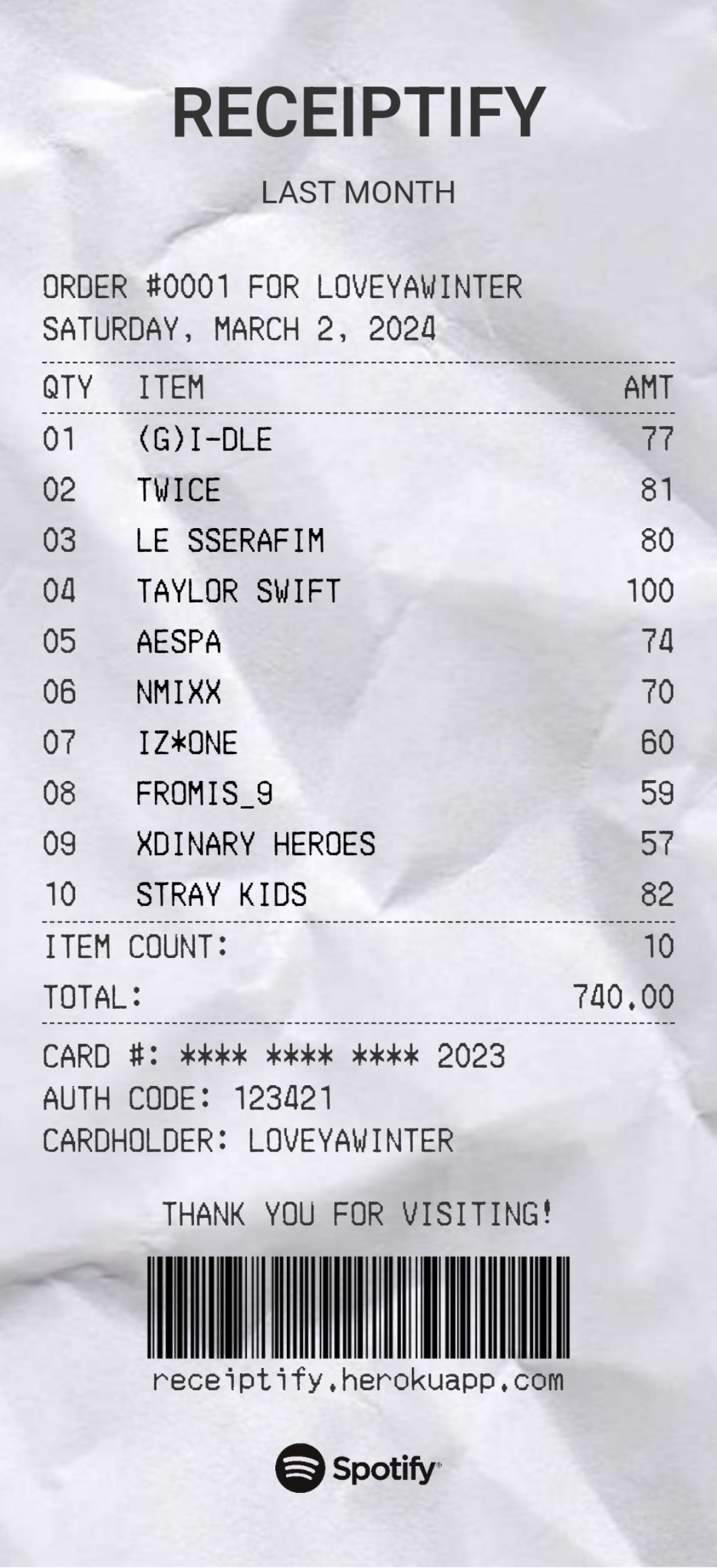 • AUTOR@dora_npc @Yu-qi @-.Vivianne.Stark.- wpiszcie sobie w Googla "Spotify stats receipt" to wam powinno wyjść