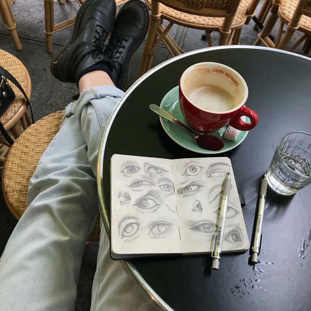 Dosłownie mam tak samo! Zawsze jak nie wiem co nabazgrolić z tyłu zeszytu, gdy się nudzę w trakcie lekcji, pada na rysowanie oczu — zawsze! 🤎👁