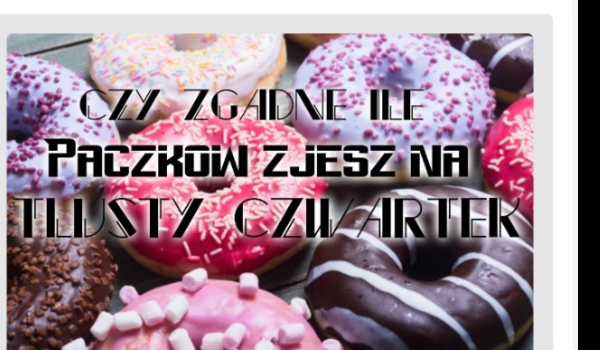 livkaa Czy zgadnę ile paczków zjesz w tłusty czwartek? Odpowiedz na pytania, a ja powiem ci ile zjesz paczkow w tym roku! livkaa • 8 lat temu • #czwartek #czyzgadne #paczki #tlusty 4 2 Rozpocznij quiz