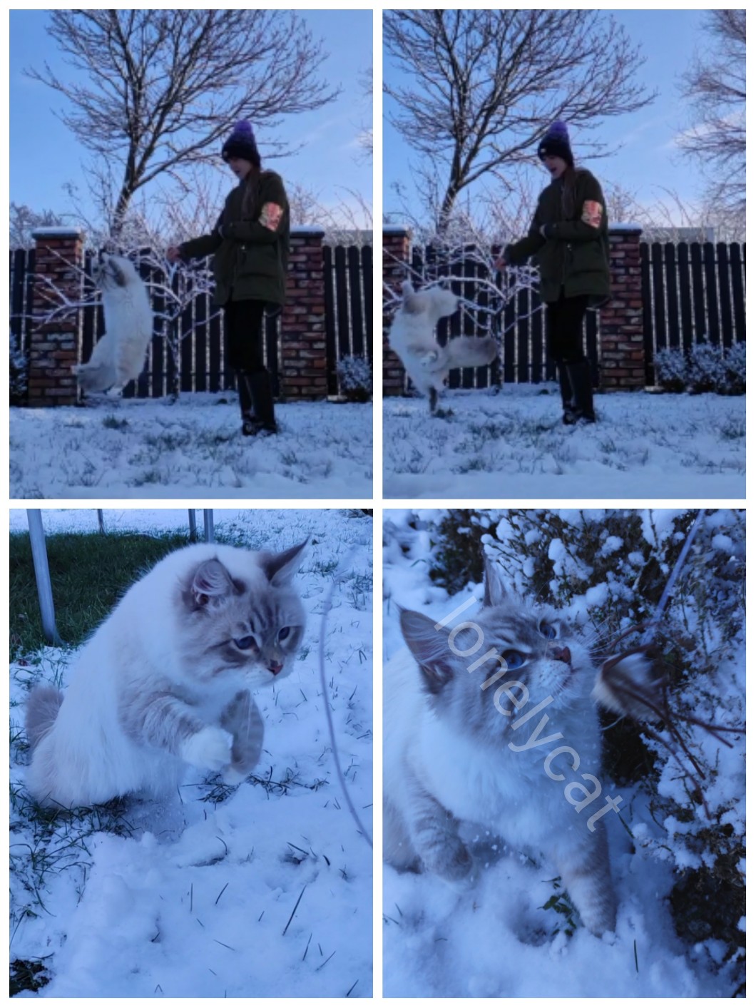 AUTOR•Cosmos kocha śnieg ✨❄️. Dlatego zabrałam go na skoki na świeżym powietrzu! Strasznie mu się podobało! Na górnym zdjęciu po prawej Cosmos stanął na jednej łapce jak baletnica ✨. Cudowne xDDD
