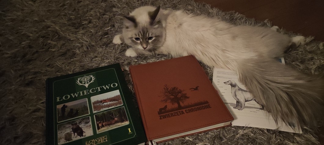 • Odkryłam, że mój Dadiś ma kilka fajnych książkek, które się przydadzą do mojej książki ⬇️✨. O mój Boże jak to brzmi- książka się przyda do książki xDDD. Chociaż nie popieram łowiectwa to ta pierwsza, cała zielona ku mojemu zdziwieniu wcale o nim nie jest ;-;. Są tam opisane każde zwierzatką! Są ich ślady, wygląd, tropy i zachowanie ❤️. Jest cudna! Tylko tytuł jest do wyrzucania na śmietnik 🤣