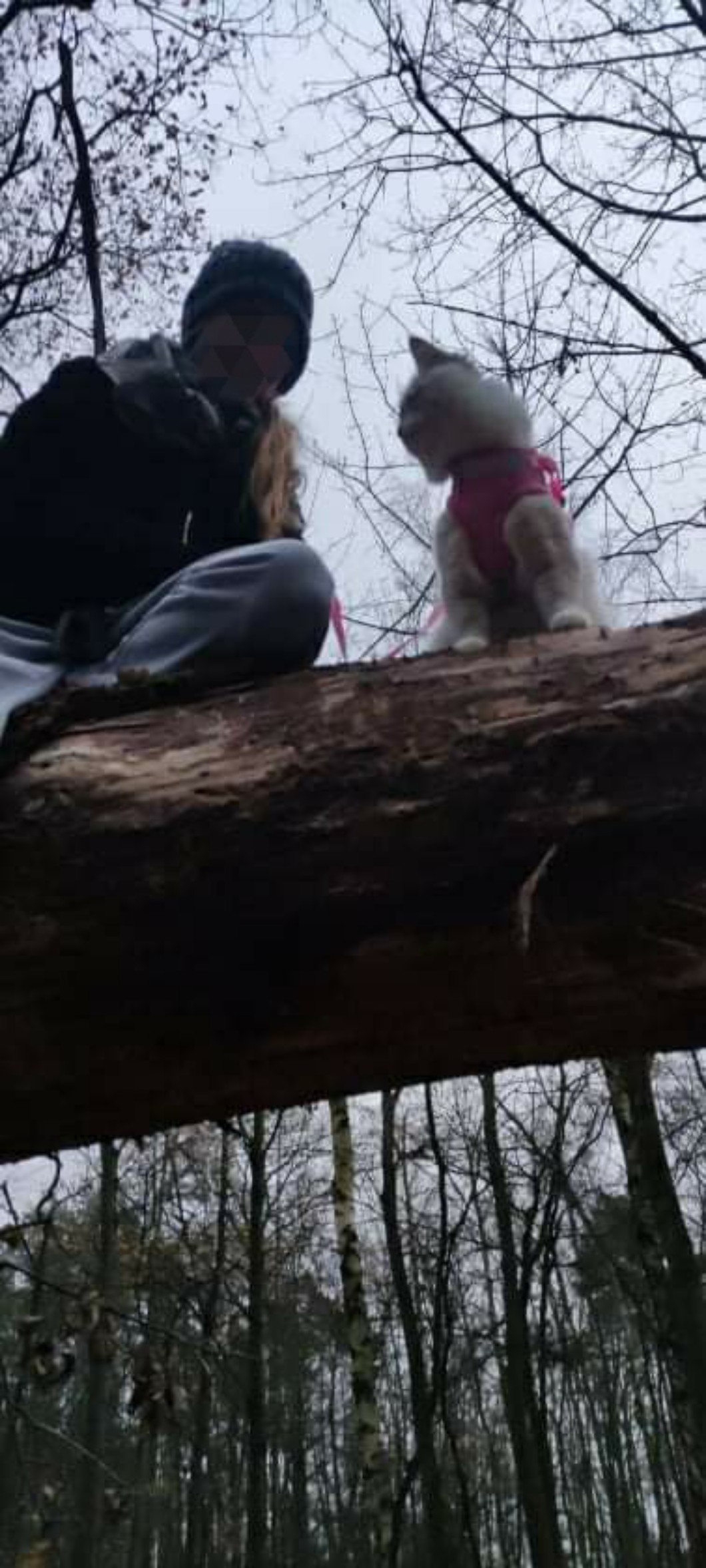 ( Tak zamazałam swoją twarz 😉⬇️🤣) i ogłaszam, że już się nauczył chodzić na smyczy! Chodzi poprostu normalnie jak pies :). Nie sądziłam, że to się kiedykolwiek uda- a jeszcze, że po tylko 3 dniach! Jestem z niego starsznie dumna 🥰. Tak szybko się uczy!