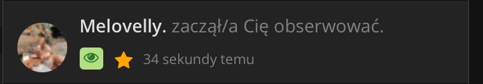 @Melovelly.! Chciałabym Ci przekazać, że każda obserwacja to dla mnie coś cudownego! Wystarczy tylko że ktoś kliknie ten miętowy przycisk, a ja już nosze banana na swojej twarzy przez cały dzień! Ale to, co przed chwilą zrobiłaś…. To jest ogromny zaszczyt dla kogoś takiego jak ja. Ja nie zasługuje na coś takiego. Dzięki obserwacji od Ciebie czuje się niezwykle, cudownie, czuję się niesamowicie doceniona! Mam tylko nadzieje że to nie było przypadkowe ;)))