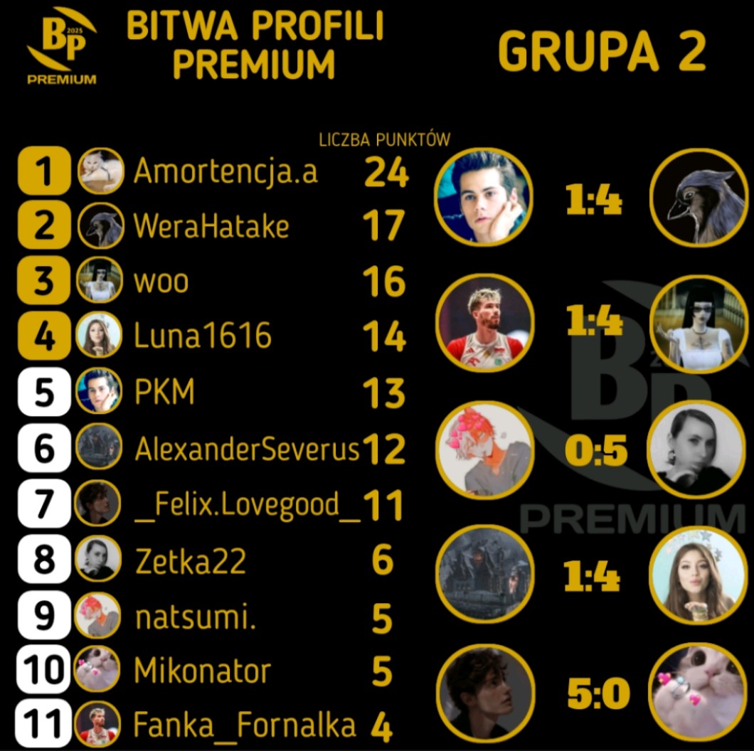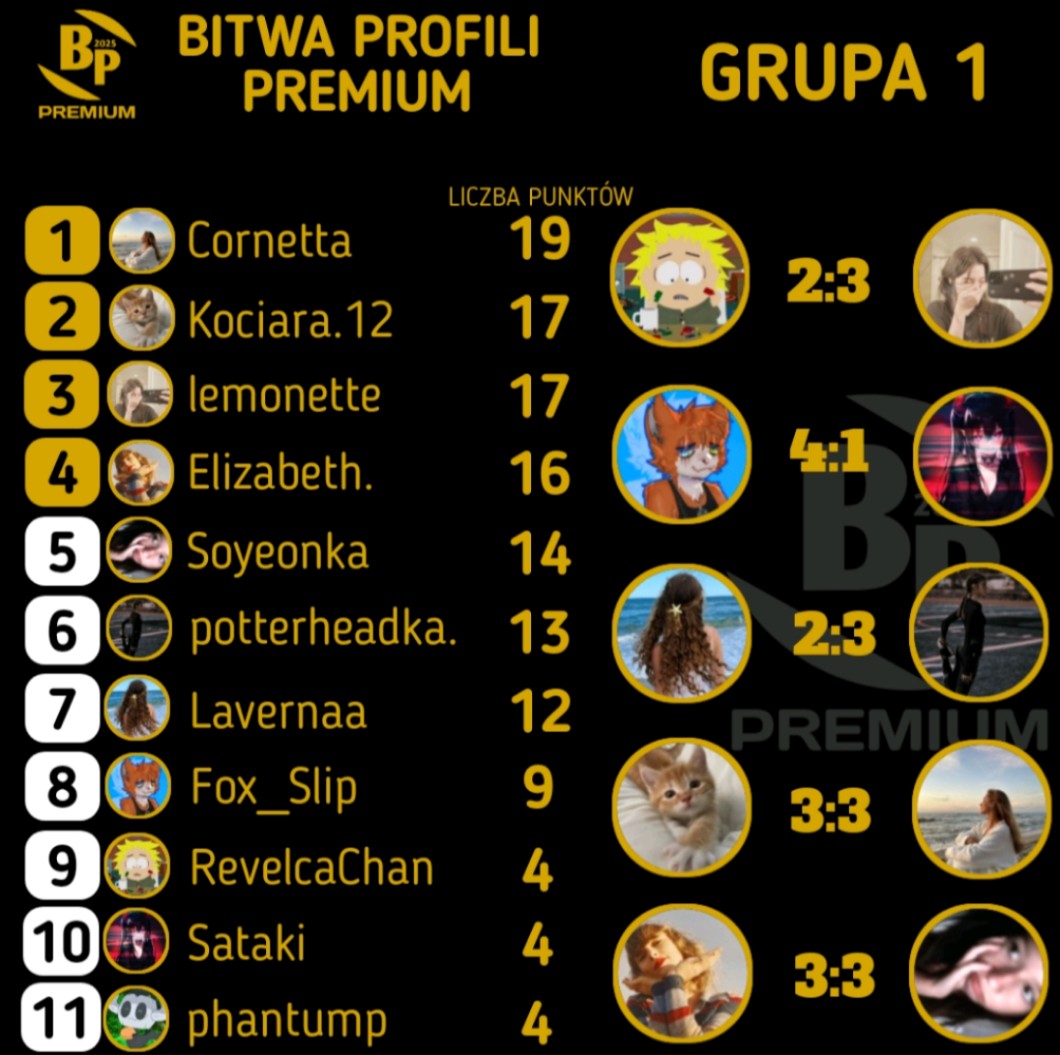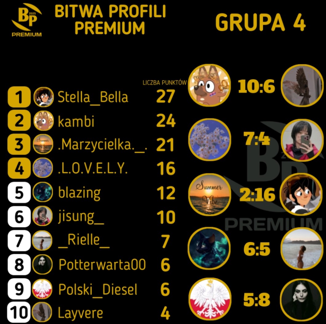 AUTOR•Końcowa tabela grupy 4 fazy ligowej bitwy profili premium