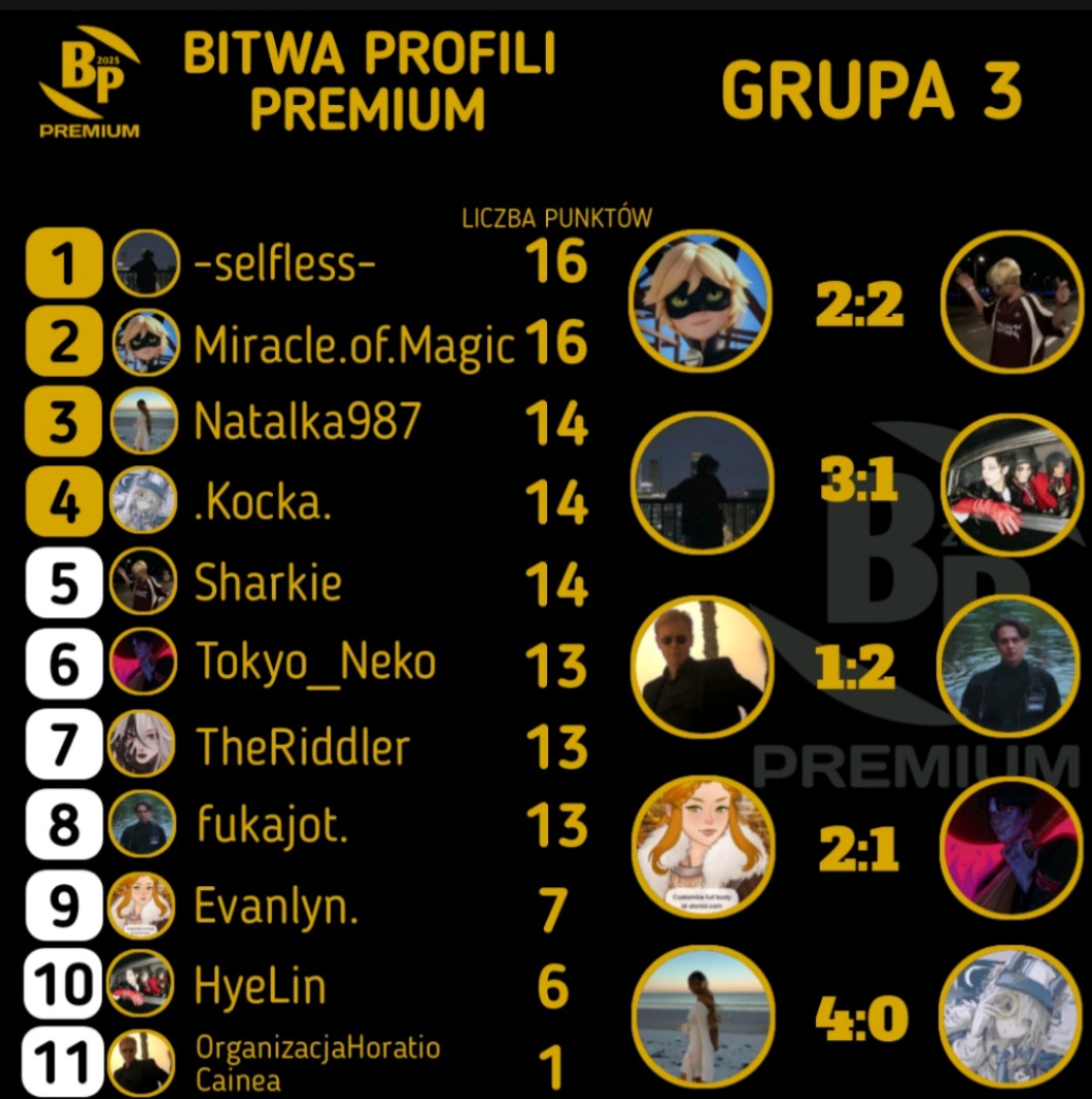 AUTOR•Wyniki grupy 3 po 9 rundzie ligowej bitwy profili premium