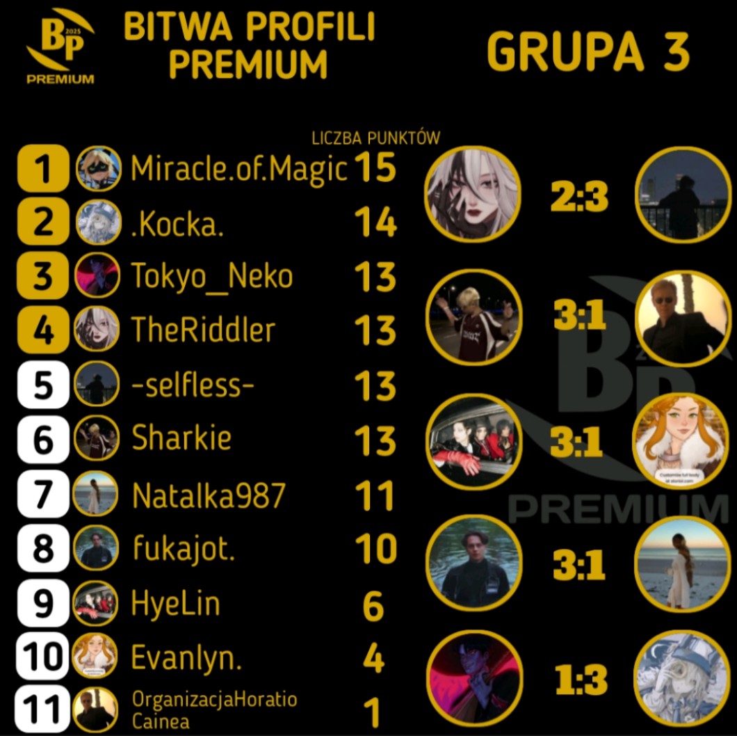 AUTOR•Wyniki grupy 3 po 8 rundzie ligowej bitwy profili premium