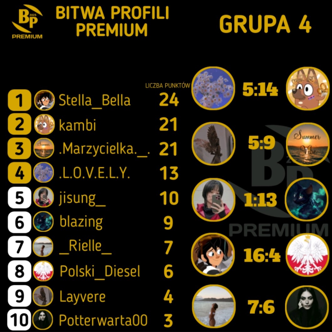AUTOR•Wyniki grupy 4 po 8 rundzie ligowej bitwy profili premium