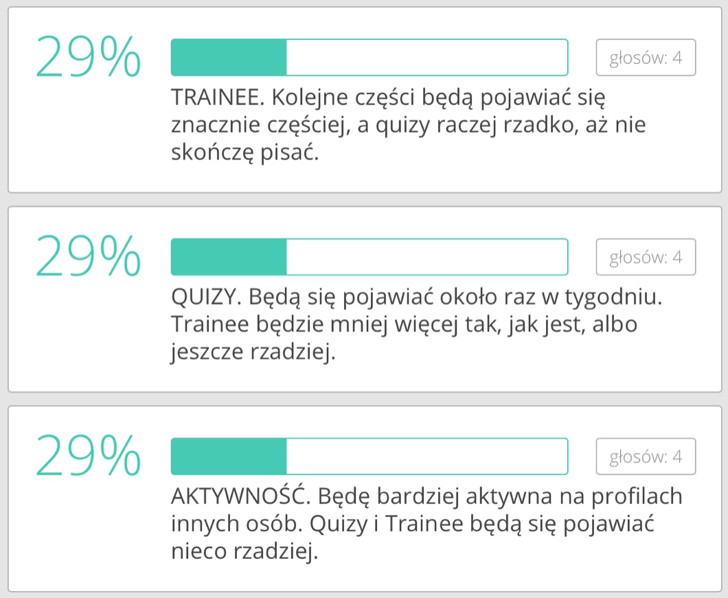 AUTOR•Ja: robię głosowanie, żeby zobaczyć, co wolicie, i co wygra