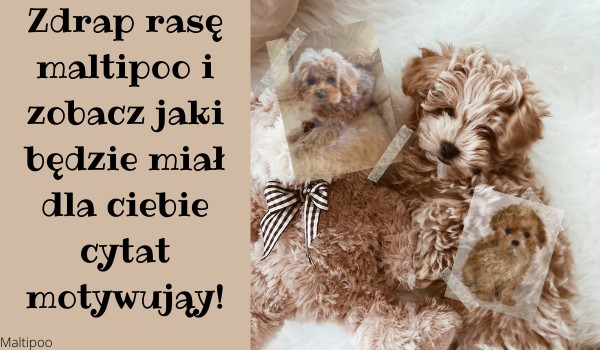 Maltipoo Zdrap rasę maltipoo i zobacz jaki będzie miał dla ciebie cytat motywująy! Zdrap i zobacz! Maltipoo • 4 lata temu • #cytat #maltipoo #zwierzeta 3 3 Rozpocznij quiz