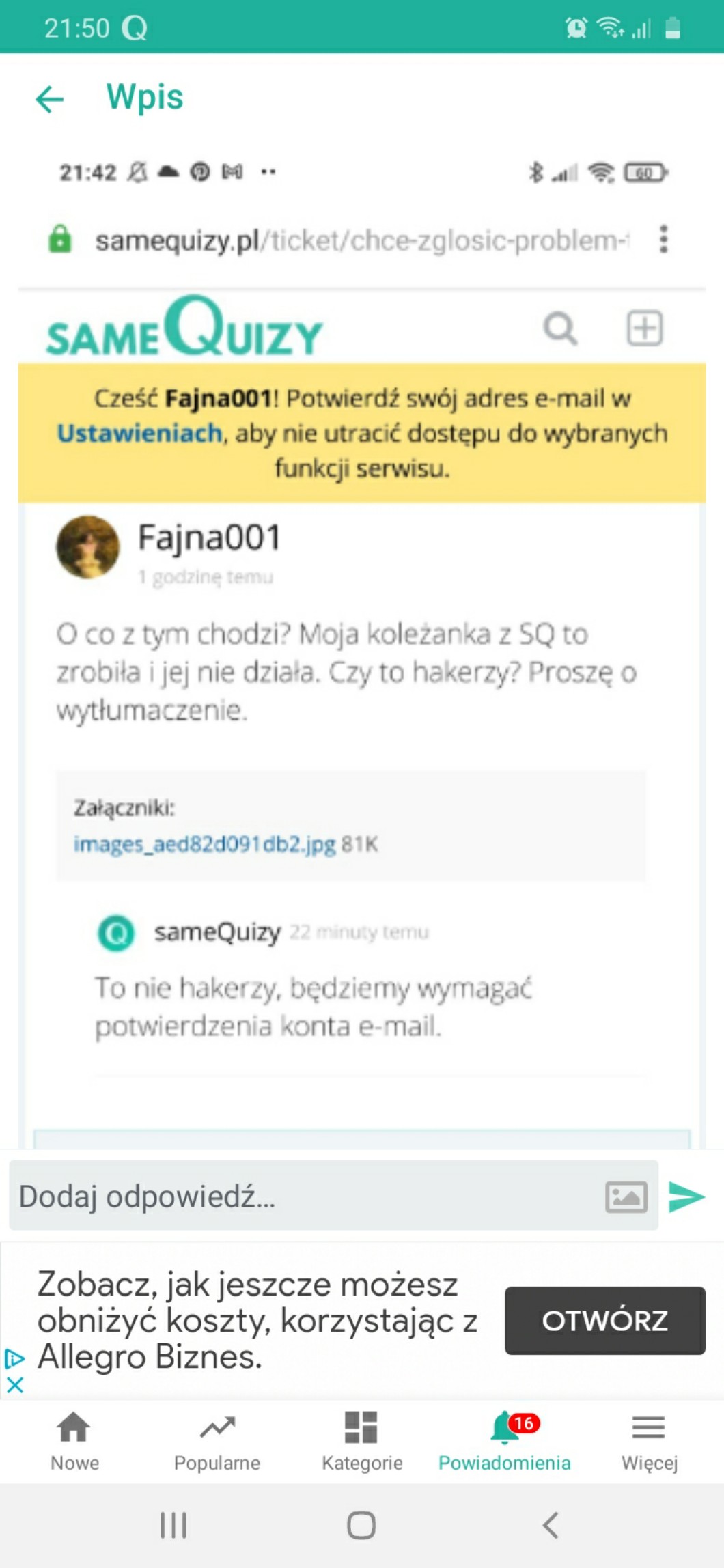 AUTOR•Ei pomocy! Pomóżcie! Proszę! Błagam!!! Niewiem co zrobić! Przez przypadek kliknęłam ,,Potwierdź emali'' I nie wiem czy to dobrze! Ja płaczę bo nie wiem co zpierniczyłam 😭😭😭