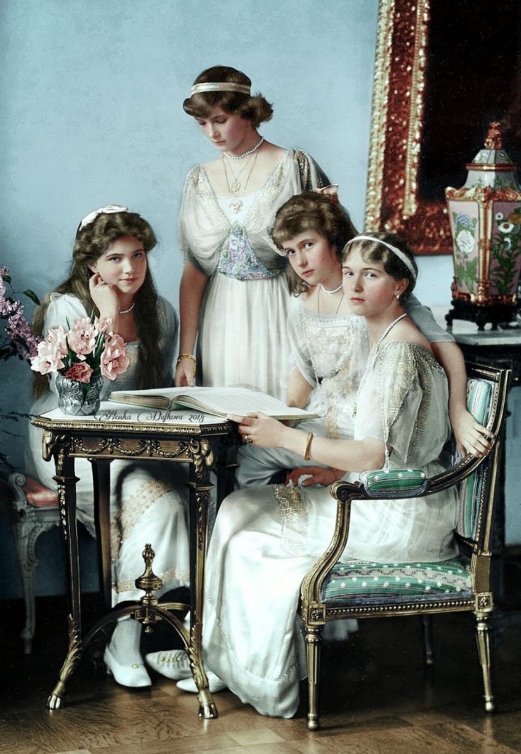 Ten podział miał duży wpływ na ich życie rodzinne i wychowanie. Olga i Tatiana dzieliły ze sobą pokój, tak jak Maria i Anastasia. OT mają razem formalne fotografie, zawsze w identycznych strojach (o tym napiszę później, bardziej obszernie, ponieważ planuję wpis o wychowaniu dzieci według rodziny Romanow). Chociaż Olga i Tatiana zawsze trzymały się razem, relacje Marii i Anastasii były trudniejsze. Maria cierpiała jako środkowe dziecko w rodzinie i często była odtrącana przez rodzeństwo (niecelowo, podświadomie). Anastasia miała etapy gdy wolała bawić się z Aleksiejem, jedynym bratem, a sam Aleksiej określał Anastasię jako najbliższą mu osobę, oprócz rodziców.