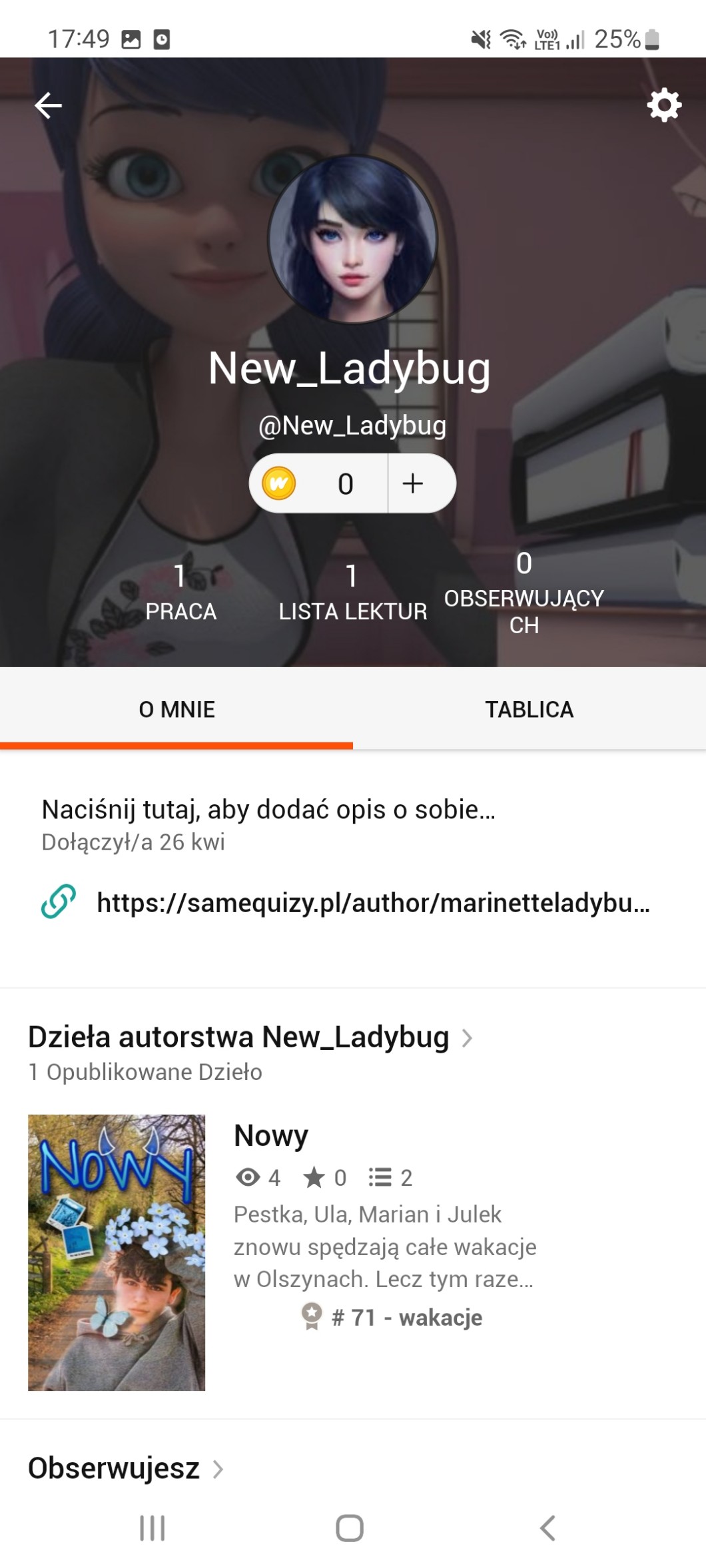 💜Ale piszę za to opowiadanie na wattpadzie i w niedalekiej przyszłości chcę też skończyć opowiadania o Mircaulum na SQ.